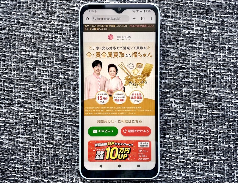 福ちゃんは、年間査定件数150,000件以上、出張・査定・キャンセルが完全無料、日本全国の出張買取対応。電話は通話料無料で24時間365日受付。